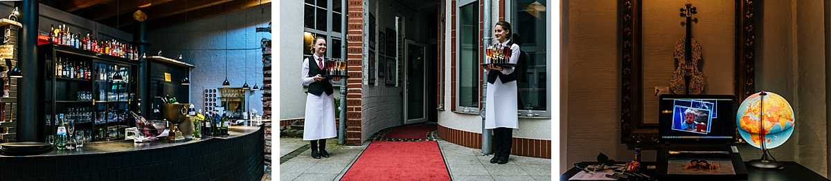 Nachdem ich das Friesieren und Schminken von Nadine fotografiert hatte, fuhr ich zum Bräutigam, um ihn bei seinen Vorbereitungen abzulichten. Er hatte dafür bei seinem Trauzeugen ebenfalls in Hildesheim übernachtet. Er war schon fast fertig mit dem Getting ready, bei Männern ist das ja auch nicht so aufwendig. Um einige der nachfolgenden Bilder zu erklären, sollte man aber vielleicht wissen, das er einen berühmten Nachnamen trägt.